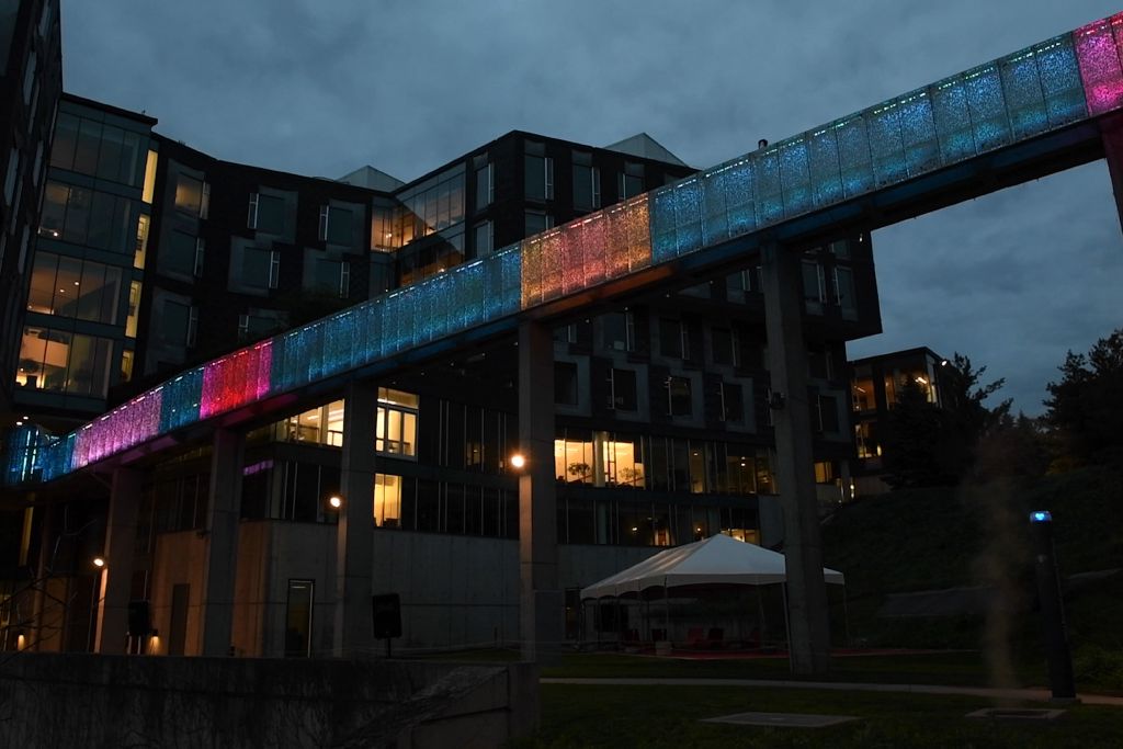 Students illuminate the Pausch Bridge with storytelling.