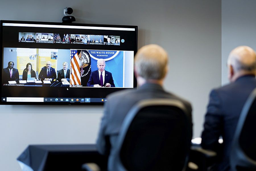 Carnegie Mellon President Farnam Jahanian joined in a video conference with U.S. President Joseph R. Biden for an announcement that Southwestern Pennsylvania was one of 21 regions awarded a Build Back